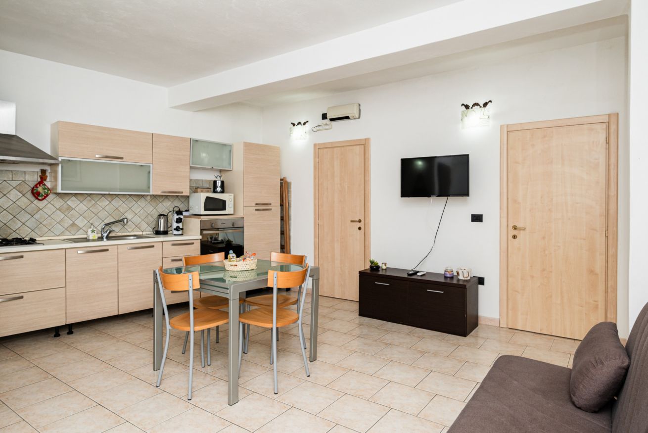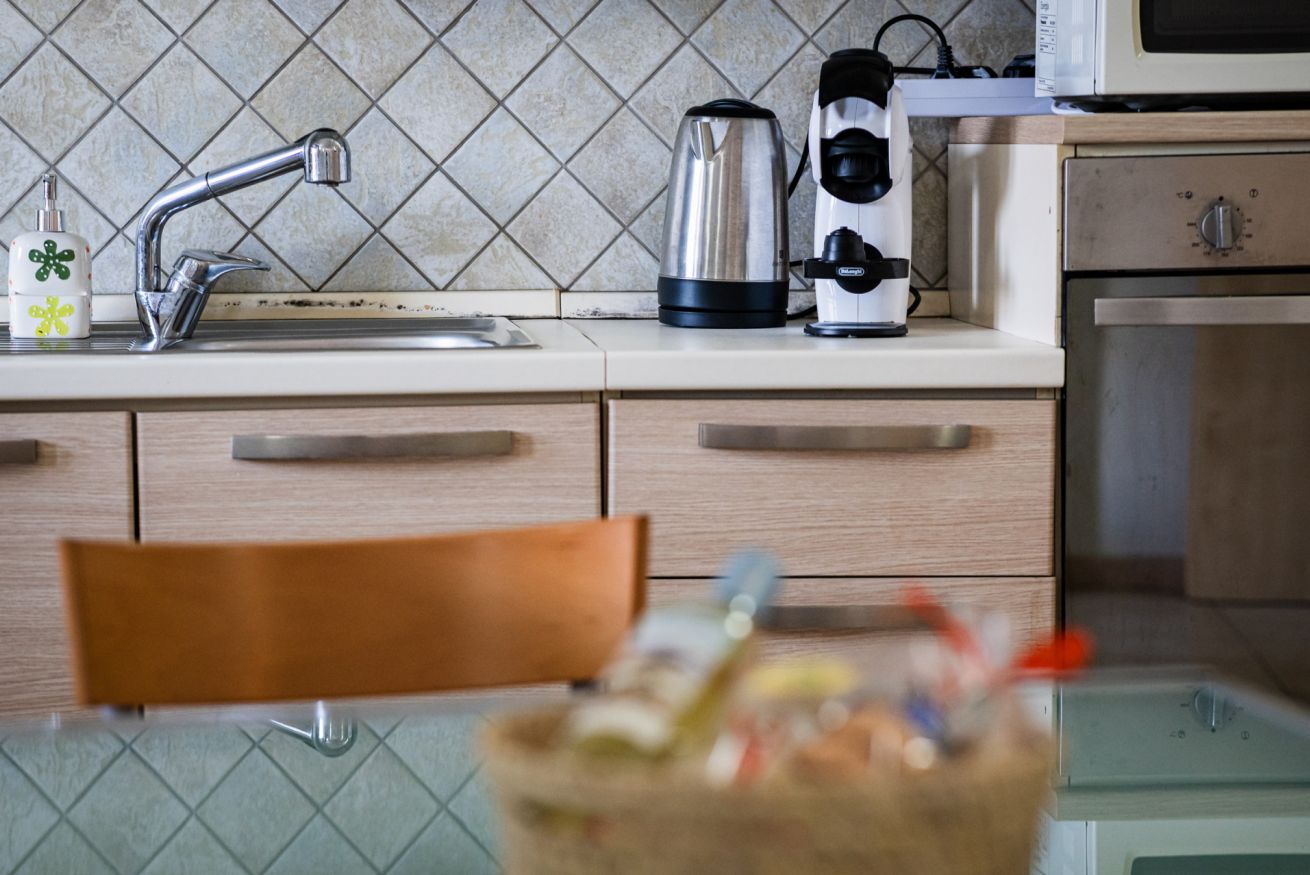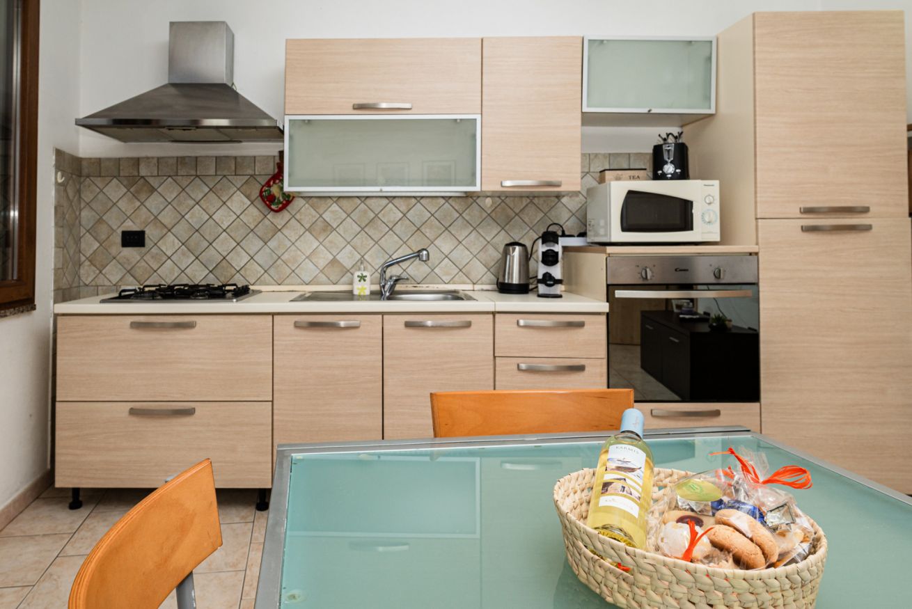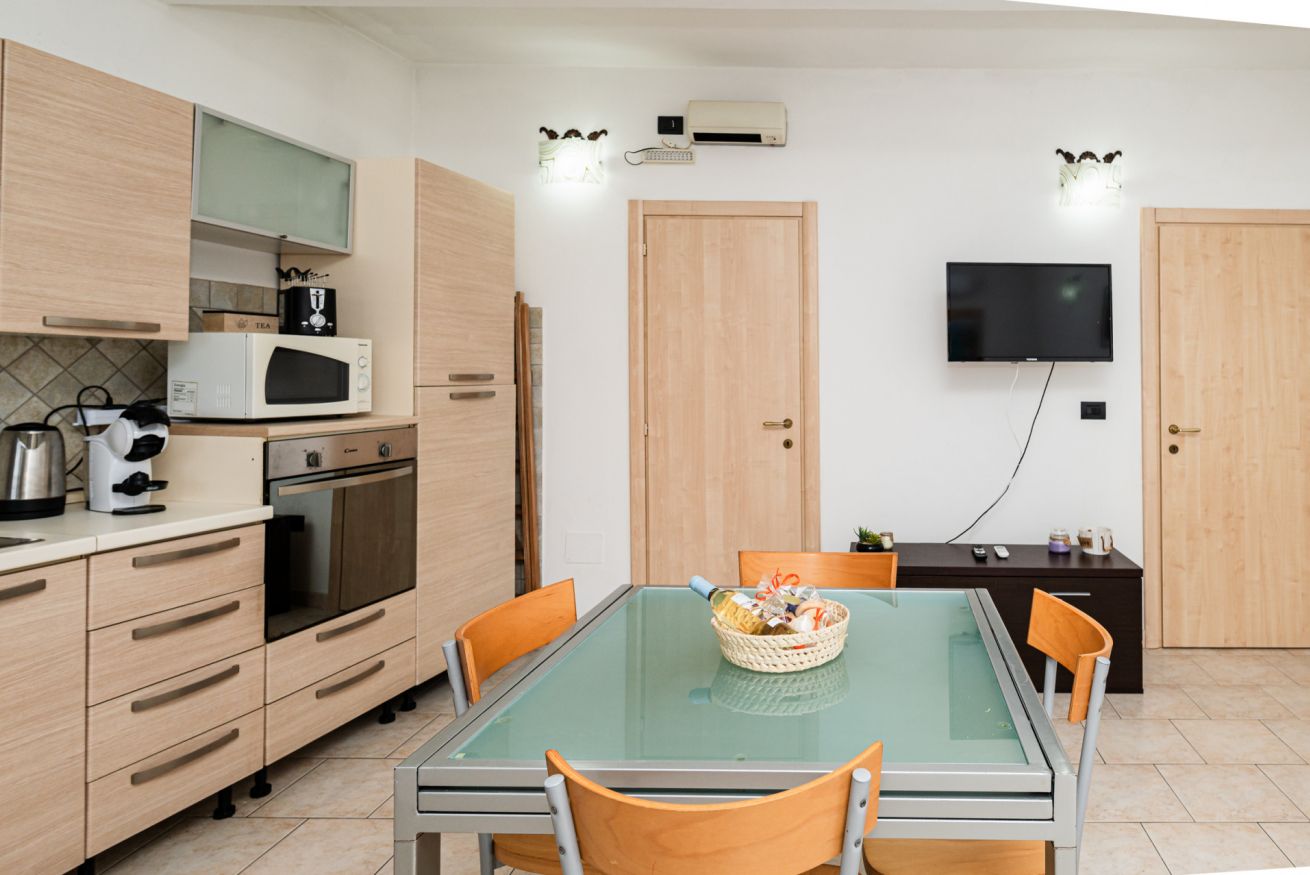 Zona giorno con cucina full service, completamente attrezzata per preparare i tuoi piatti preferiti.
