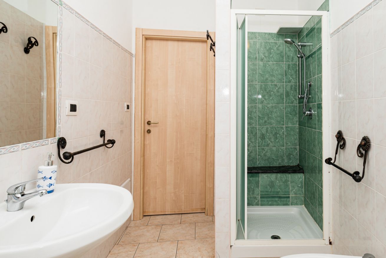 Bagno moderno e funzionale, dotato di tutto il necessario.