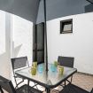 Accesso diretto a un patio interno riservato, perfetto per pranzi all’aperto, aperitivi o momenti di tranquillità sotto il cielo di Stintino.