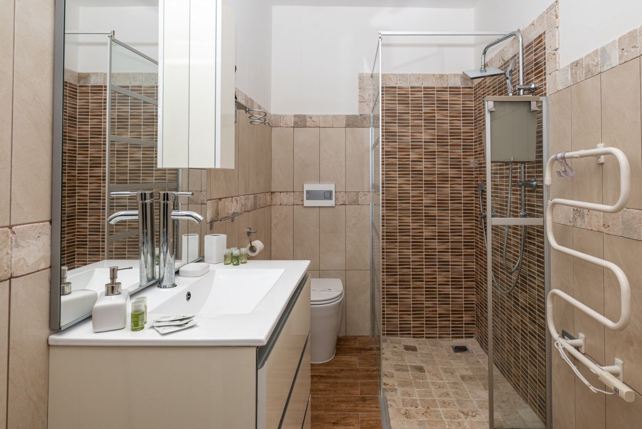 - Bagno moderno con doccia ampia e soffione a pioggia + scalda-salviette