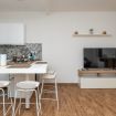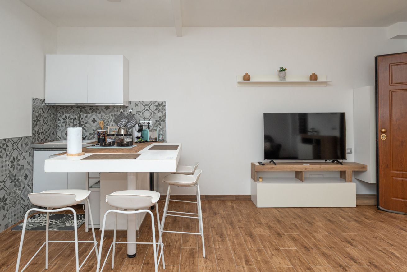 - Zona giorno open space con cucina e bancone snack