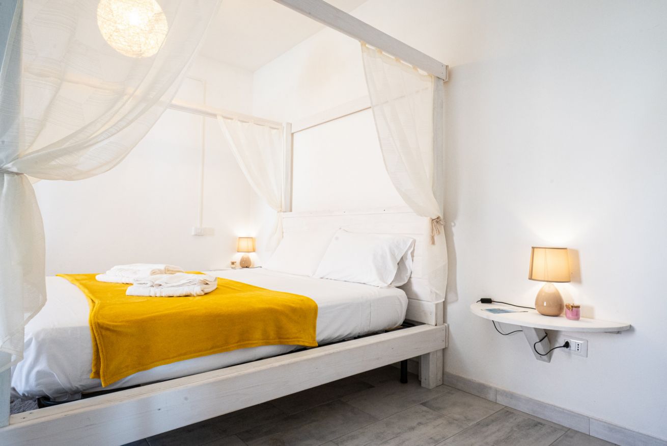 Pensata per le coppie, questa dimora unisce charme e comfort, regalando un’atmosfera intima e rilassante. Il suo letto a baldacchino bianco, elegante e avvolgente, è il protagonista assoluto dello spazio, perfetto per chi cerca un rifugio esclusivo nel Nord Sardegna.