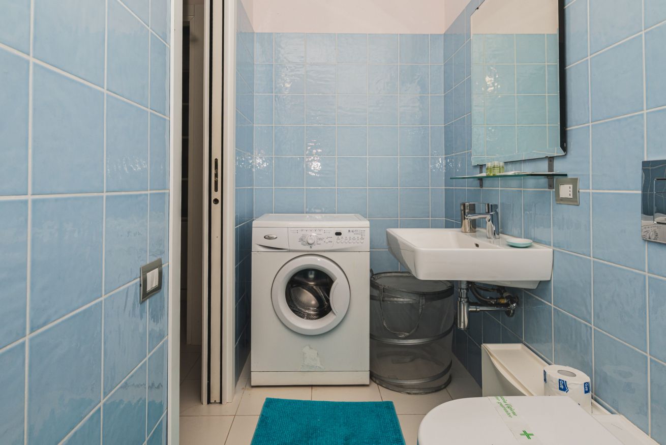 - Bagno con doccia e lavatrice, pratico anche nei soggiorni più comodi