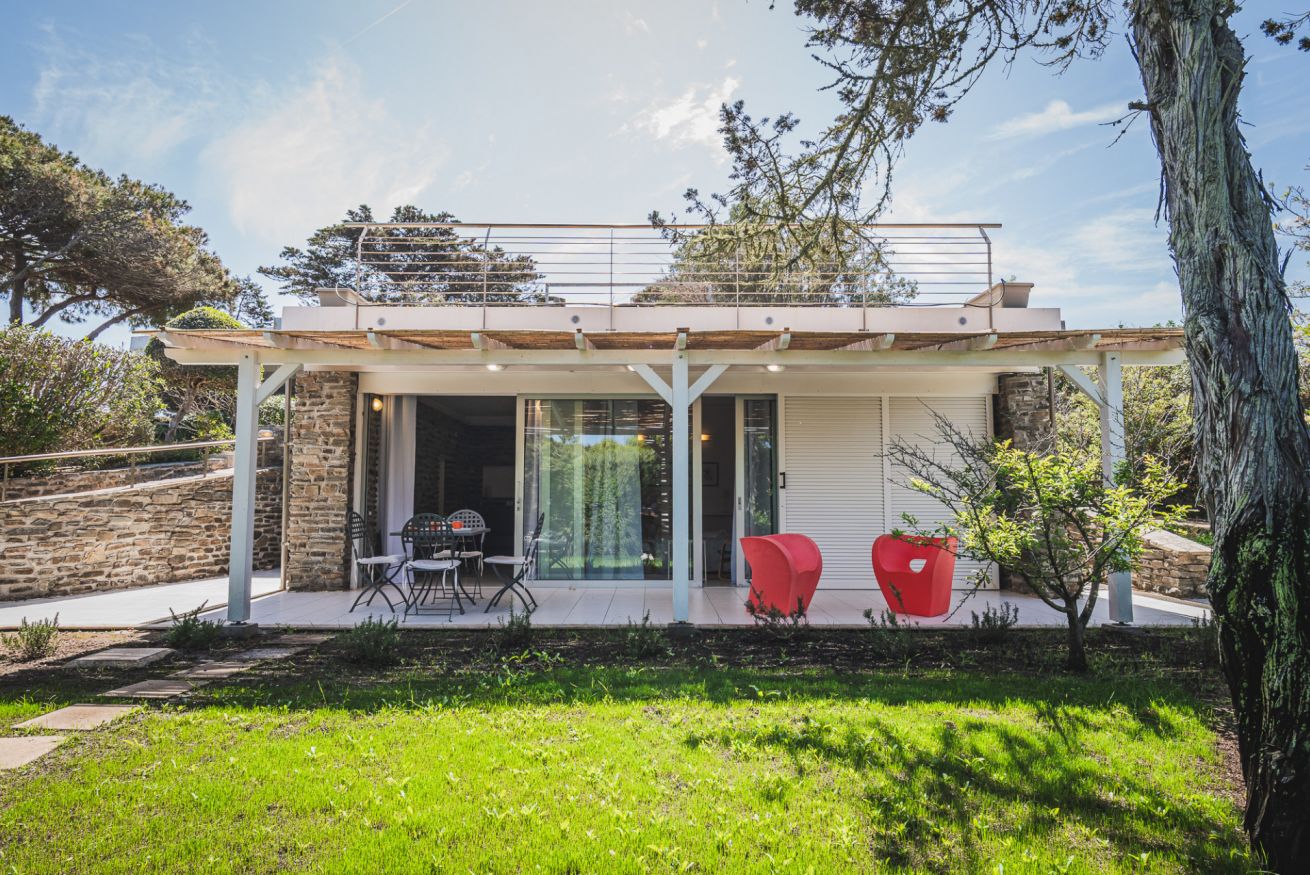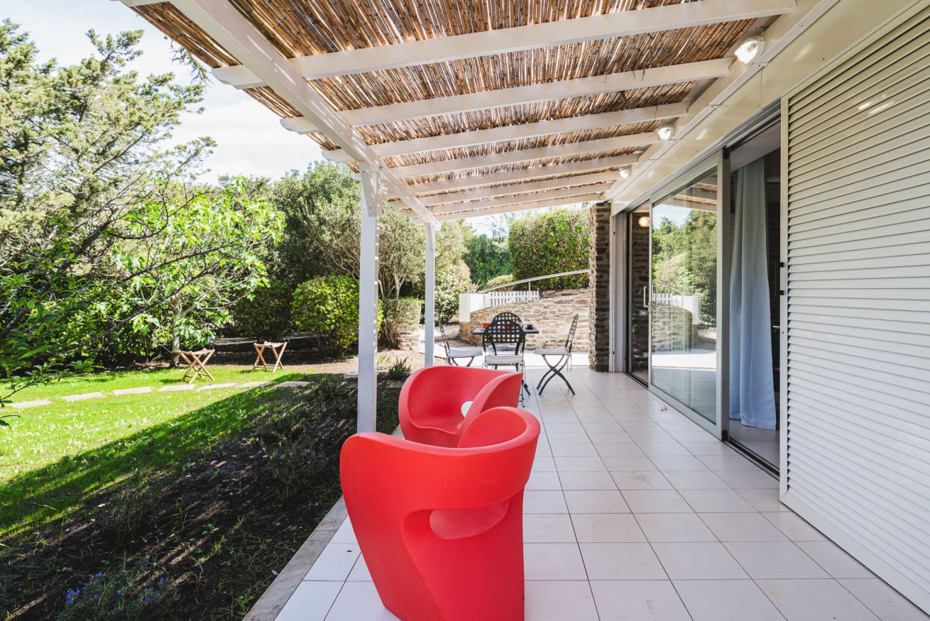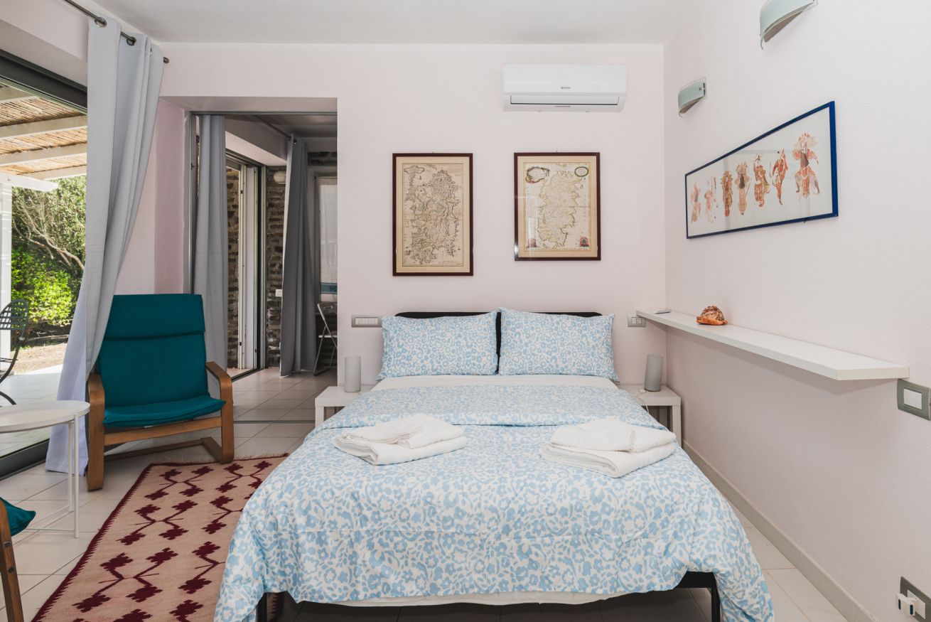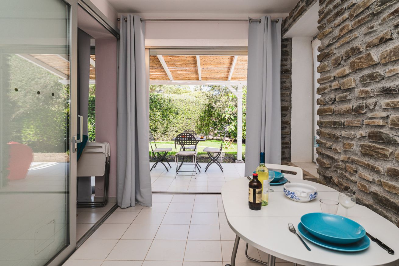 Qui la casa si apre davvero verso l’esterno: grandi vetrate, veranda coperta, giardino e una zona outdoor che rende più piacevole ogni rientro. In Via Molfino, in Località L’Ancora Stintino, si inserisce in un contesto tranquillo, ideale per chi cerca una vacanza più rilassata e ben vissuta. Gli interni hanno un’impronta semplice ma riconoscibile, con la parete in pietra a vista che dà carattere alla zona giorno e rompe l’effetto anonimo. È una soluzione che funziona bene per chi vuole quiete, spazi ben distribuiti e la comodità di vivere la casa anche fuori.