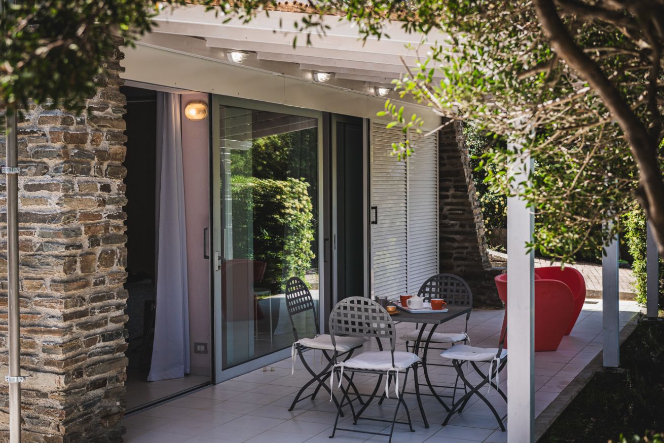 - Veranda coperta arredata, ideale per colazione, pranzo leggero o una pausa all’aperto